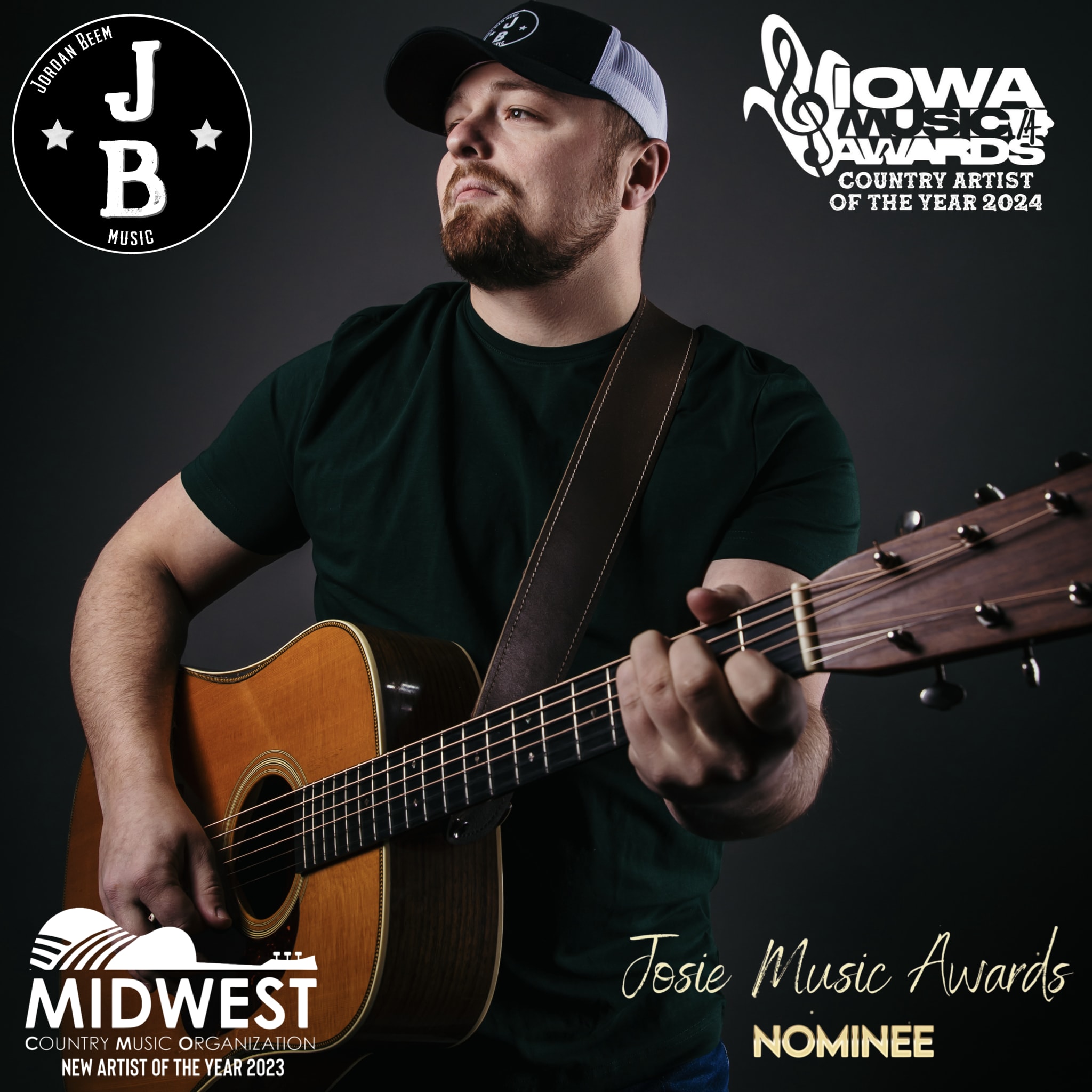 Jordan Beem is a rising country artist out of Des Moines, IA, earning major recognition across the Midwest. This year he was nominated for Male Country Artist of the Year at the Josie Music Awards, voted 2024 IMA Country Music Artist of the Year, and named the 2023 Midwest Country Music Organization New Artist of the Year.